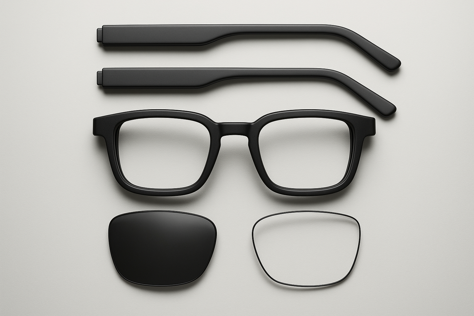 Swap lenses or temple arms effortlessly—whether you want sunglasses, photochromic lenses, or blue-light protection.